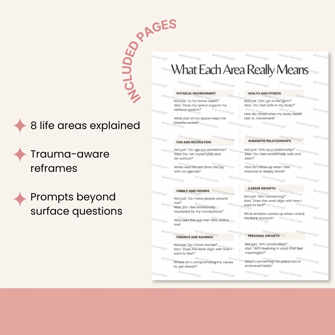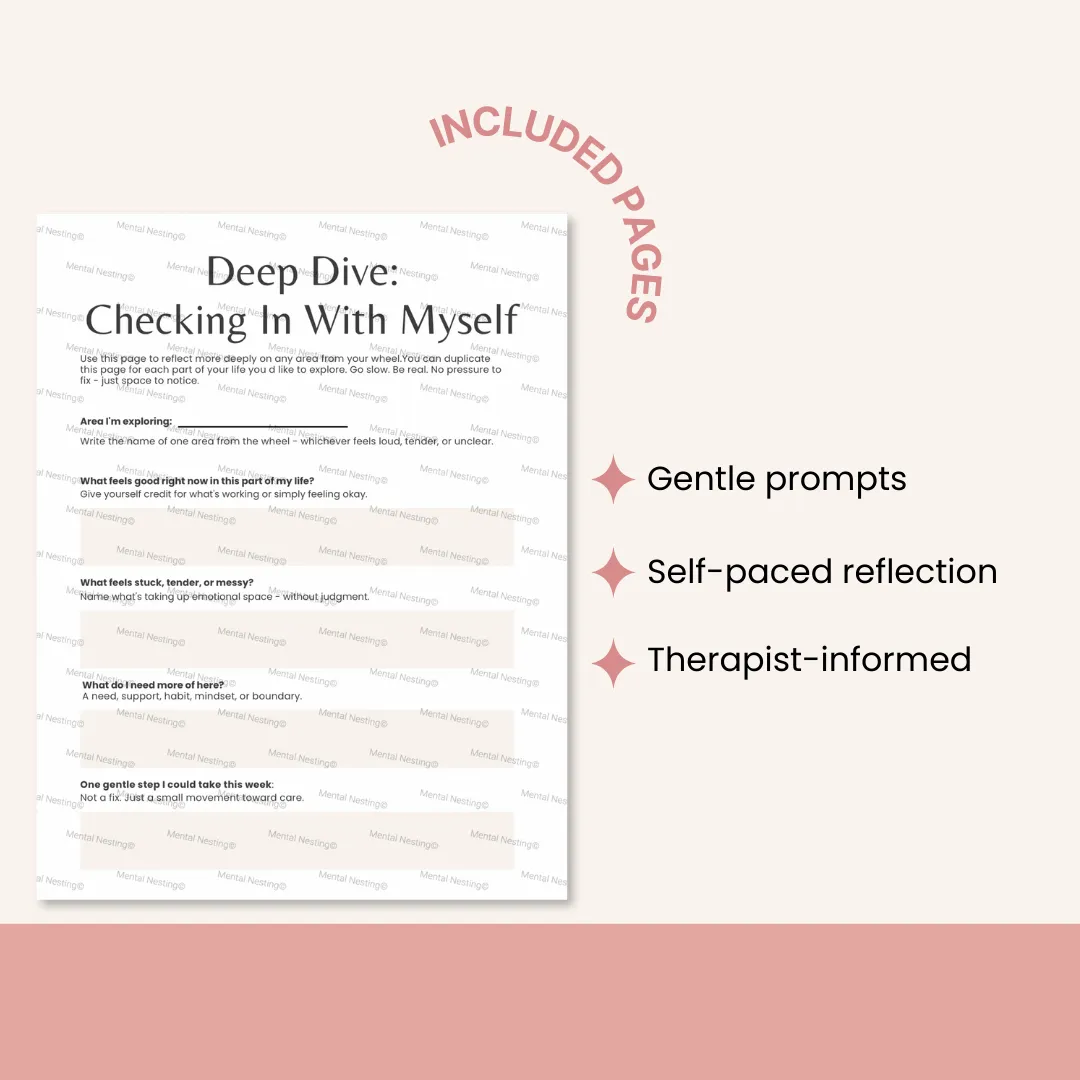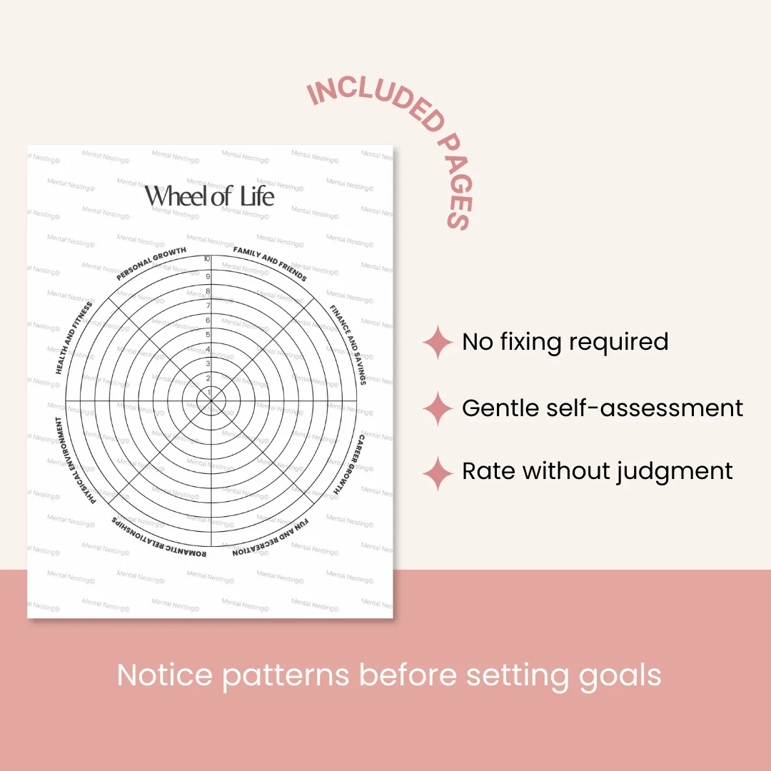 Inspired by the classic Wheel of Life, this tool has been reimagined for sensitive, overwhelmed, and therapy-experienced people who want clarity that feels safe. Instead of asking you to change everything, it invites you to notice, name, and choose gently.