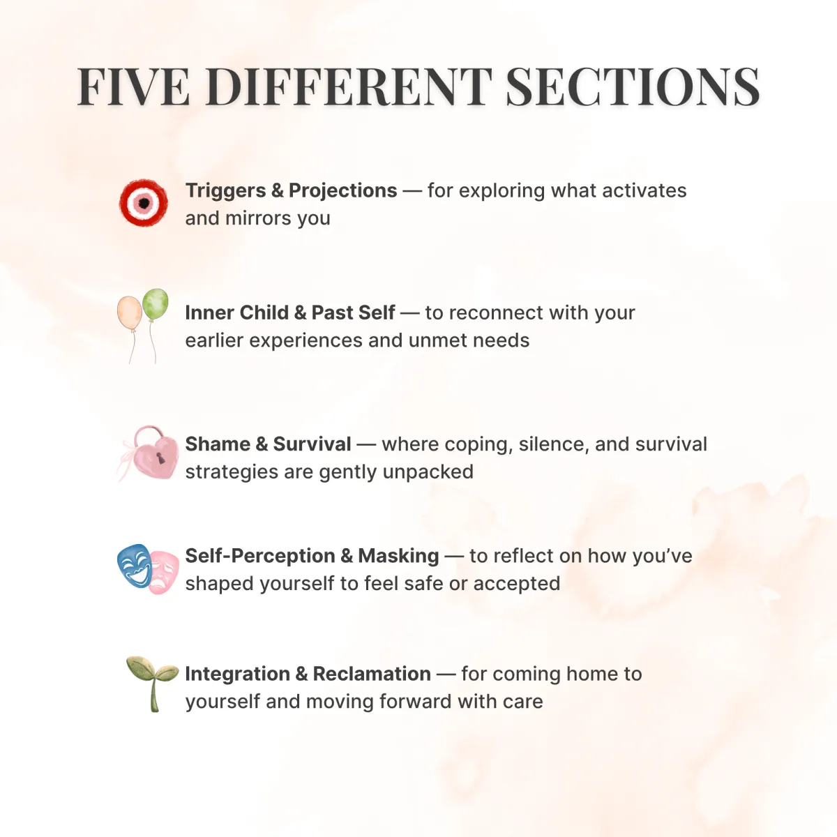 • Integration and reclamation prompts to ground, reconnect, and move forward